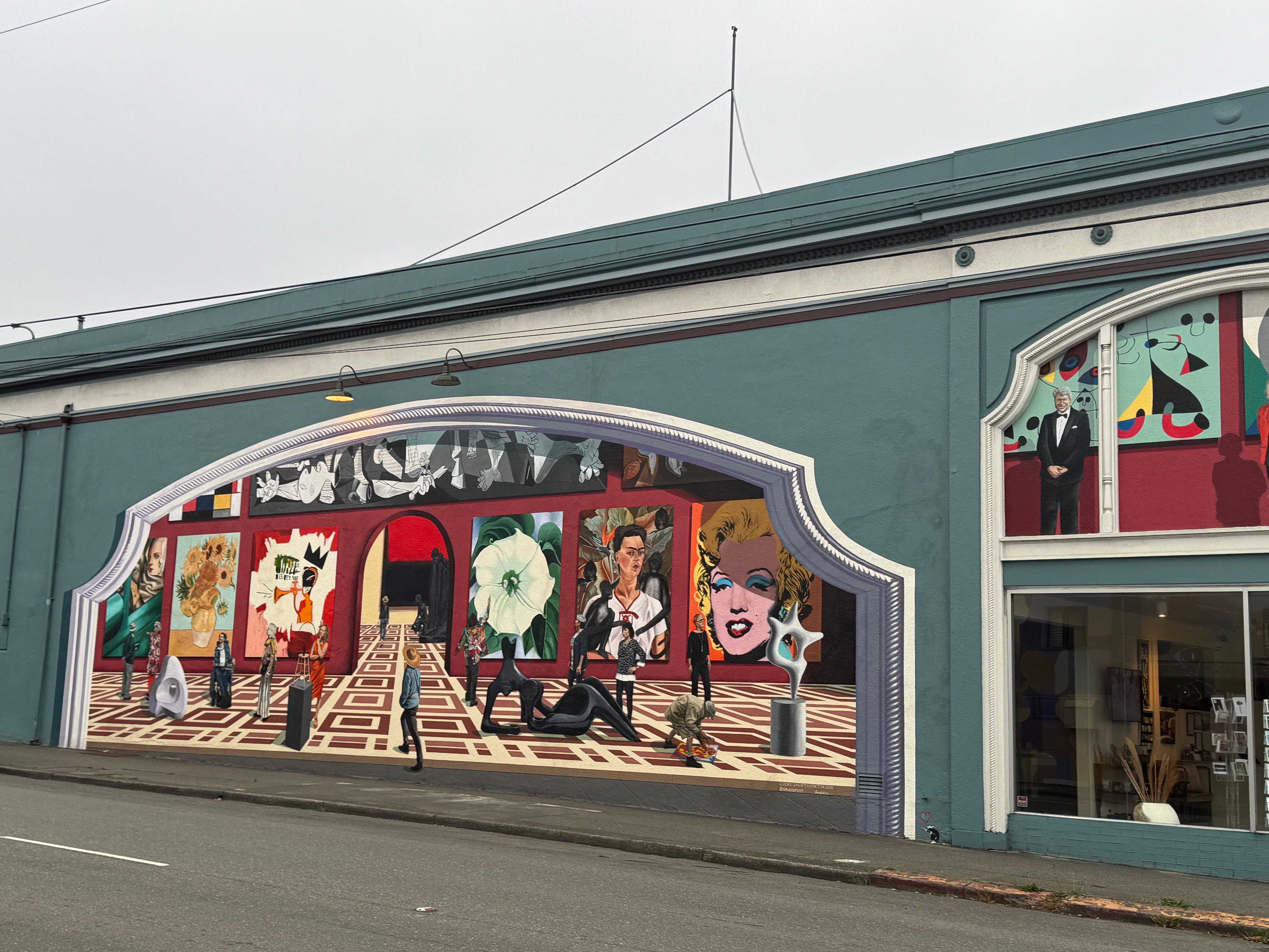 We found Eureka to be a charming sea town with a great history and a lot of 1800’s buildings restored and still in use. The Eureka hotel dates to 1922, showcasing many early 20th century artifacts as well portraits of many famed politicians and actors. I found a number of fun murals painted on the buildings in town as well.