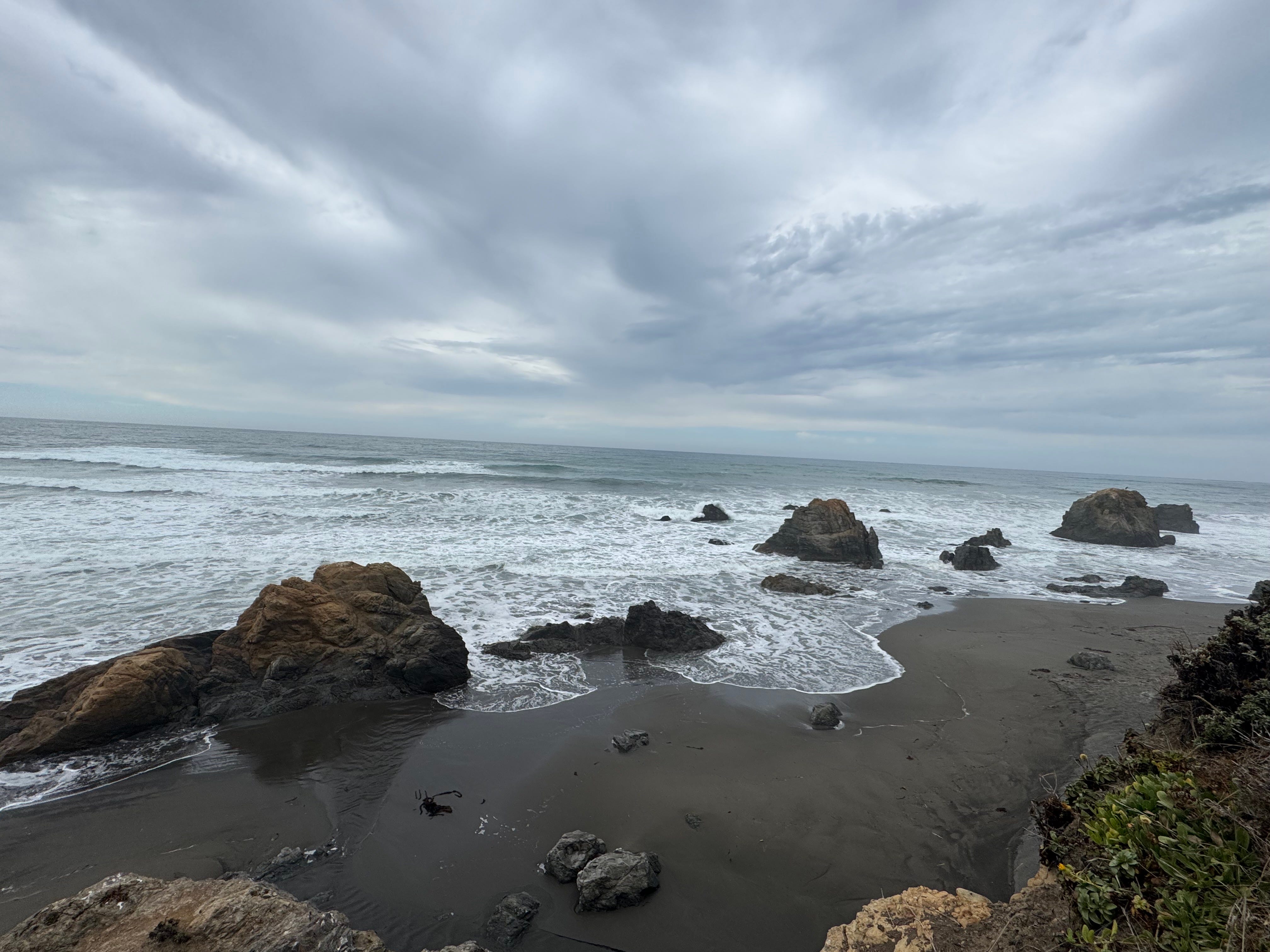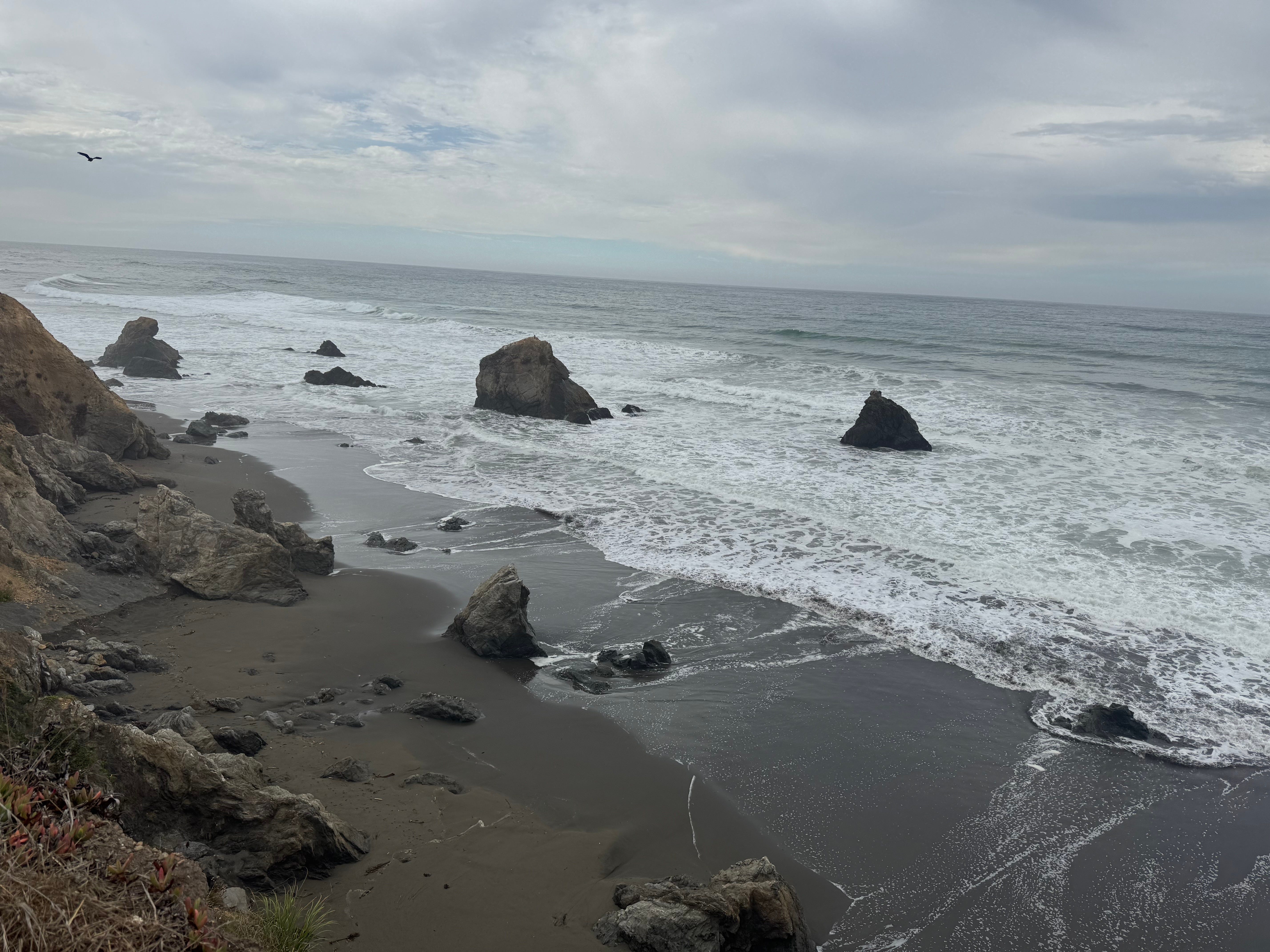 The Chandelier tree was a good stop, such an iconic tourist location, how could you not stop? After leaving the tree, we headed back to the coast. There was more shoreline, beaches and the famed glass beach at Ft Bragg, CA. Once the site of a town dump, apparently predominantly glass bottles, it was closed and cleaned up many years ago. The constant action of the waves tumbled the sharp, broken glass into smooth sea glass over many years. At first glance it honestly was not that impressive. The shoreline is very rough, a lot wave action and sea spray. I did craft some more impressive photos by getting very close to the sand. (looking out from normal height wasn’t that photo worthy.) We wandered around the beach until it was close to noon. We found a fun little burger joint up the road that was really good. Basic flat top grilled burger and very good French fries, hot and fresh.