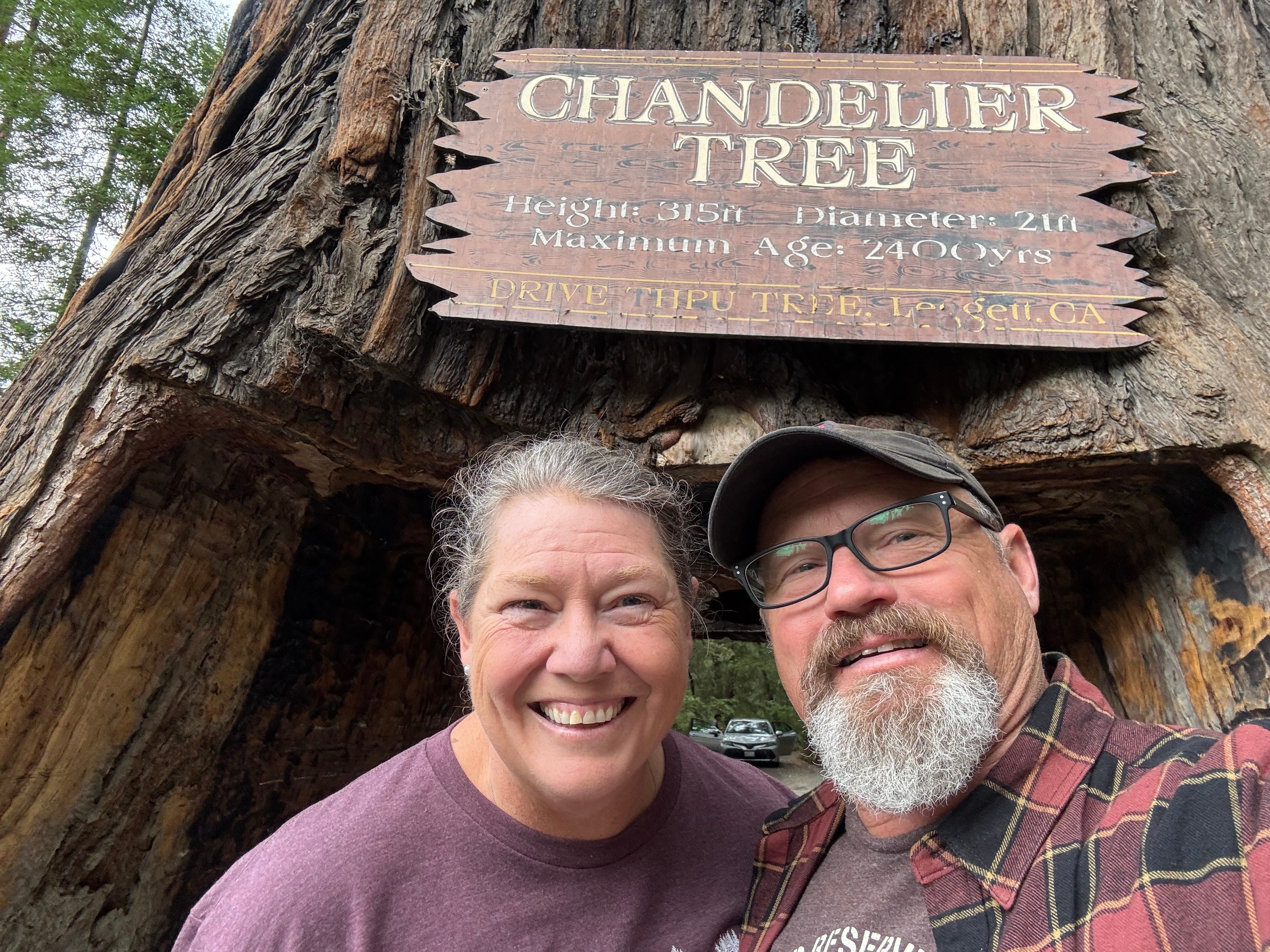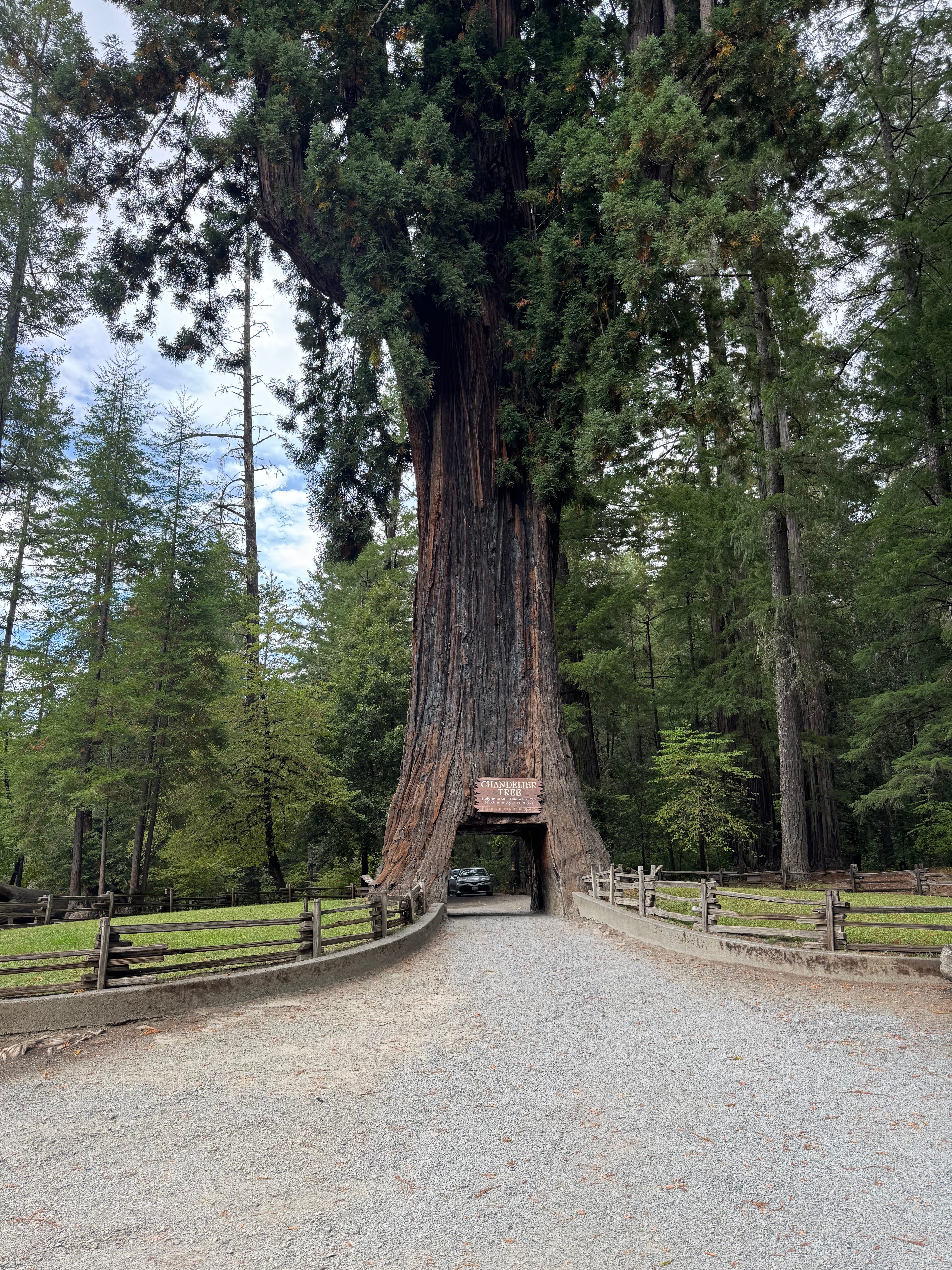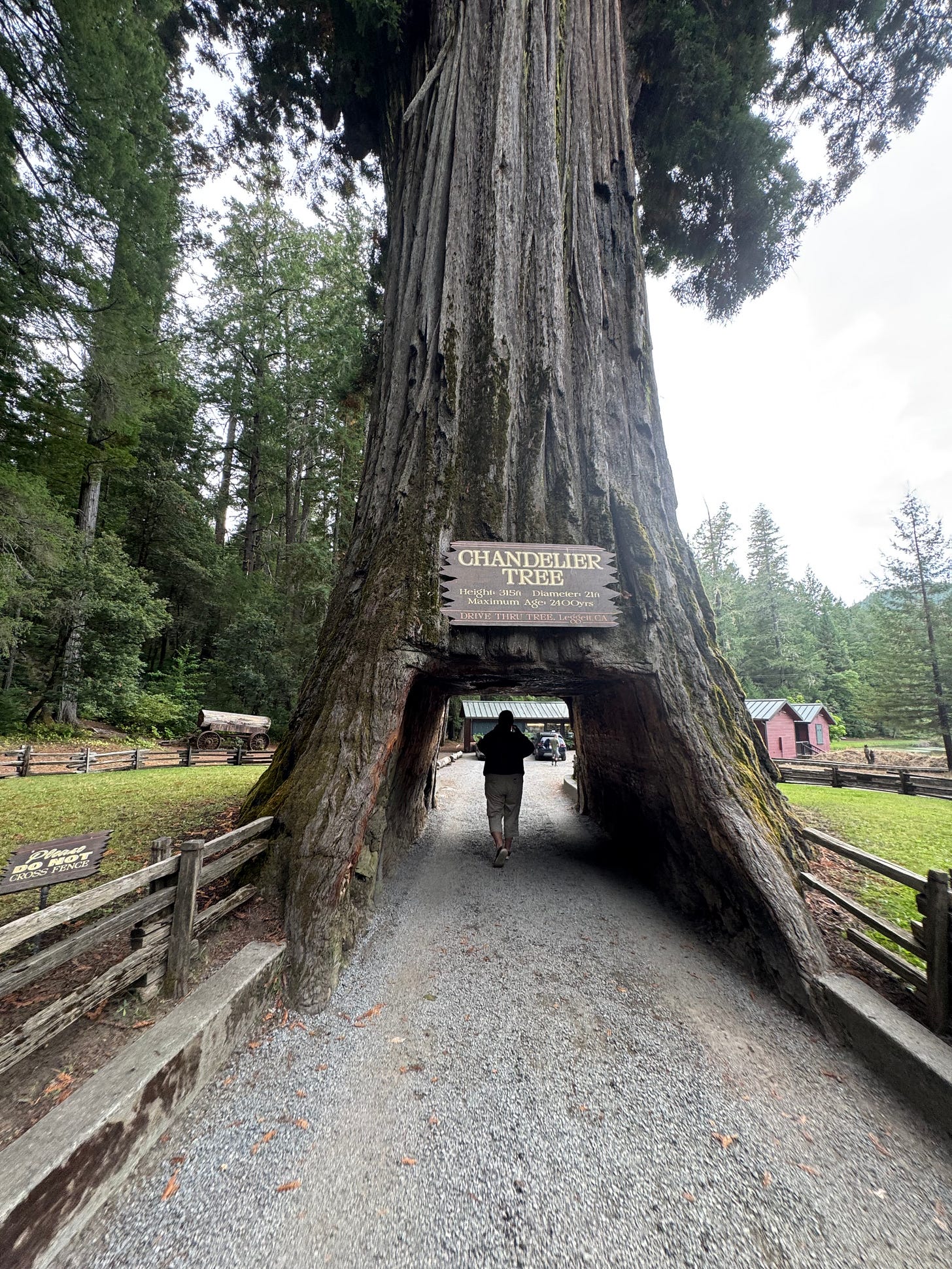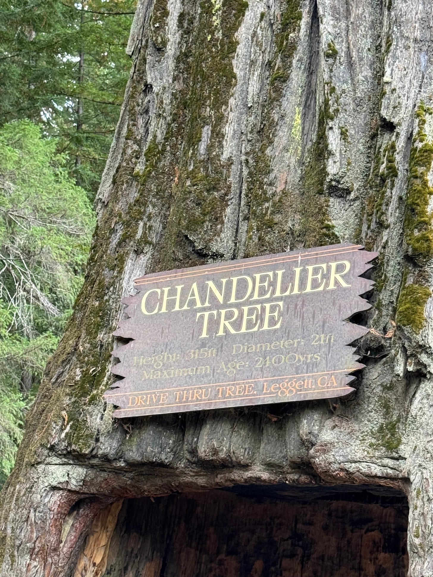 After leaving Eureka, our next destination was the “Glass Beach” in Ft Bragg, CA. Of course, there were more things of interest along the way. There was more Redwood Forest, and the iconic Chandelier Tree. The giant Redwood that you can drive through. Well, not with an F250 diesel truck anyway. It is estimated to be 2,400 years old and is still alive and well despite having a massive tunnel cut through it. The gift shop was fun and it made for a nice restroom and leg stretching stop.